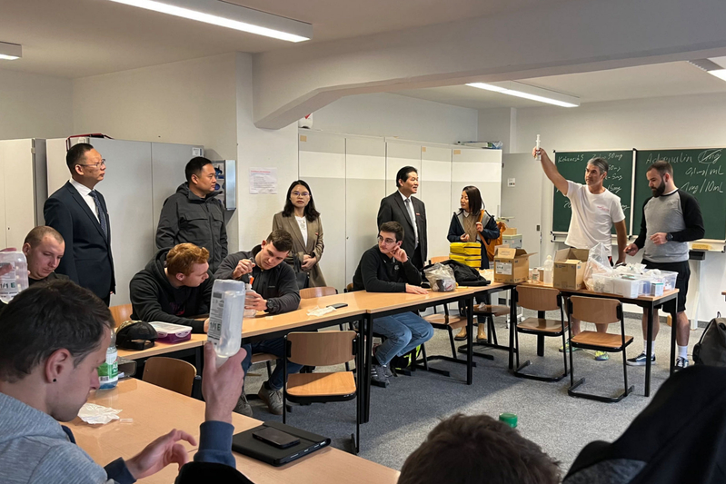 In F+U Sachsen Vocational Training College, the delegation visited F+U Nursing College, Preschool Education College, and Automotive Service Training College. Meeting with Dr. Meinhold, Chairman of F+U Group, and Kathleen, the company's head, they had a diccussion on new energy vehicle course construction, emergency management practical training, and vocational training for colleges teachers in Jiangsu Province as well as the preparation for the 2024 Management Committee meeting ofSino-Germany Knowhow Automobile Training Base and etc.